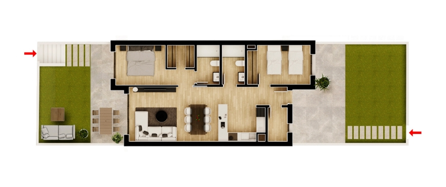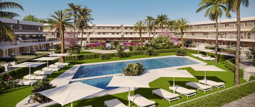 Prices from €240,000 The new apartments and duplexes for sale have 2 and 3 bedrooms and 2 bathrooms , with spacious terraces and communal gardens, forming a small, private, and peaceful residential complex. All homes come with fully furnished and equipped kitchens, including a ceramic hob, extractor hood, and oven. They also feature air conditioning with a heat pump, aerothermal hot water, smooth white paint on walls and ceilings, double-glazed PVC doors and windows, and built-in wardrobes in the bedrooms. Ground-floor apartments have gardens, while the duplexes boast large terraces. The residential complex features private gardens, a communal swimming pool for adults and children, and a multi-purpose room. The nearby Alenda Golf Clubhouse offers a gym, bar and restaurant, and paddle tennis courts. Furthermore, the complex itself includes a bilingual school and a supermarket, making Alenda's amenities excellent and complementing the wide range of services available in the city of Elche/Elx, just minutes away. Expected delivery date:- Phase 1: SOLD .