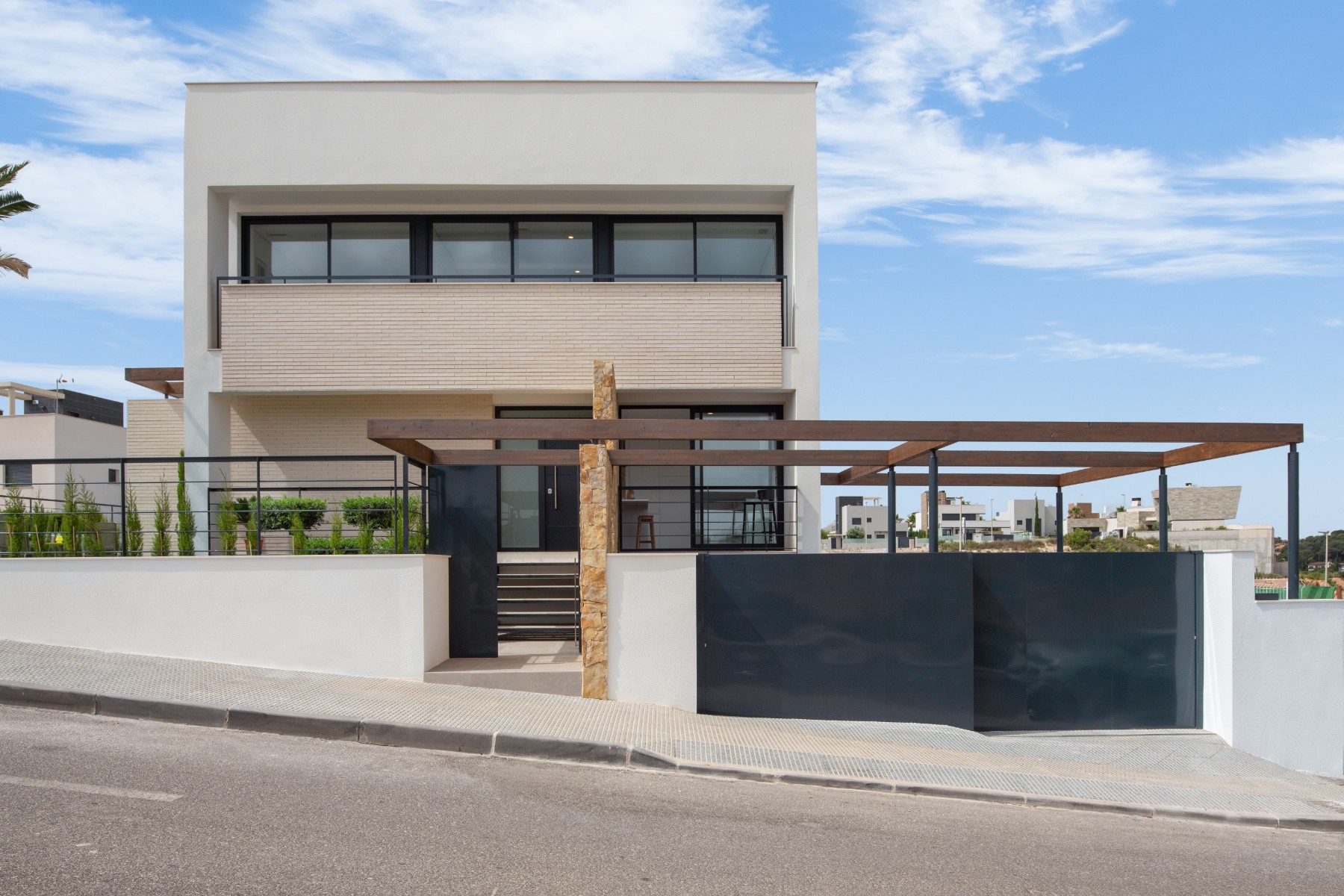 Upstairs you will find a large bedroom with fitted wardrobes and en-suite, a further double bedroom with fitted wardrobes, laundry room and a fully fitted bathroom. There is also a lounge area with access to the upper sun terrace.