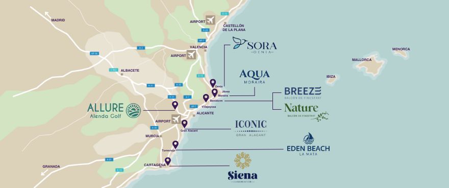 The residential complex comprises 2 and 3 bedroom apartments with 2 bathrooms , all featuring spacious terraces and views of the Mediterranean Sea. Southeast facing.