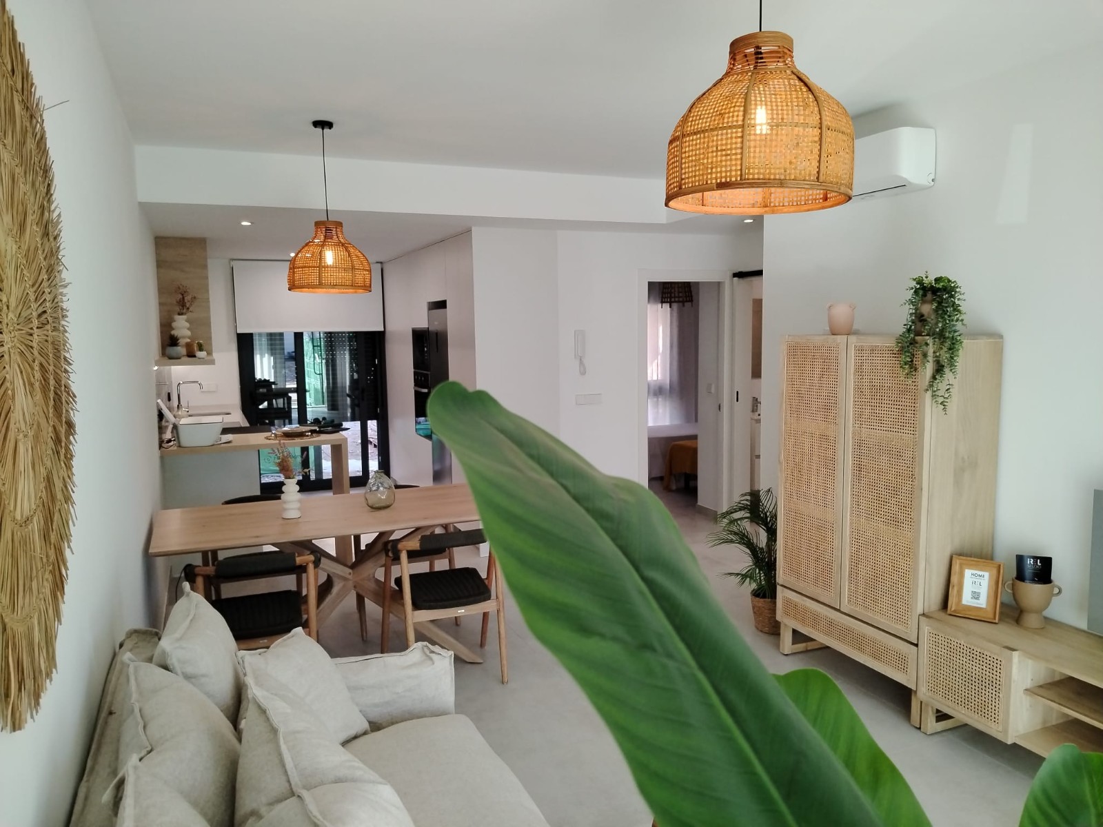 Benoa Thai is an exclusive development of 24 luxurious bungalow apartments situated within walking distance from the town centre of Pilar de la Horadada, a Spanish town full of character and charm which has a host of amenities including banks, medical centre, supermarkets, bars, shops and restaurants and the stunning beaches are a few minutes by car. Benoa Thai is a secure gated complex which includes communal gardens overlooking the rambla, swimming pool and secure parking. This fully furnished ground floor apartment consists of a lounge/diner with patio doors leading out into the garden and terrace, an open plan modern kitchen with oven, hob and extractor, dining area, master bedroom with fitted wardrobes and en-suite, a further bedroom also with fitted wardrobes and a guest bathroom. There is also a rear garden with off road parking for the car. The Pilar de la Horadada area is a well established Spanish town and has a great selection of shops, bars and restaurants. It is situated only a few kilometres to the beautiful beaches of Torre de la Horadada which has a lovely marina and promenade to enjoy a glass of wine in the sun by the beach. The development is only a few kilometres away from the Lo Romero golf resort.